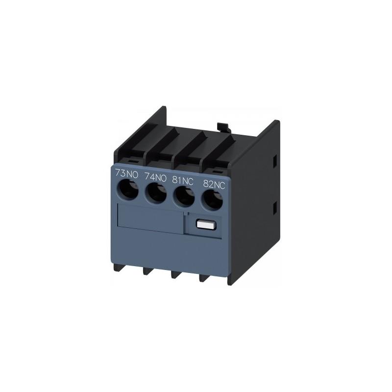 Auxiliary switch on the front, 1 NO + 1 NC Current path 1 NO, 1 NC Connection from top for 3RH and 3RT screw terminal 73/74, 81/82