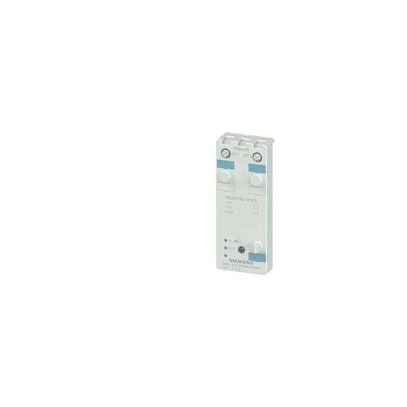AS-INTERFACE COMPACT MOD., IP67 ANALOG, 2AO, NUMERIC. FORMAT S7 2 X OUTP. (M12), +/- 10V FOR 2-WIRE ACTUATORS ACTIVE CHANNELS 1 AND 2 MOUNTING PLATE 3RK19010CA00 TO BE ORDERED SEPARATELY
