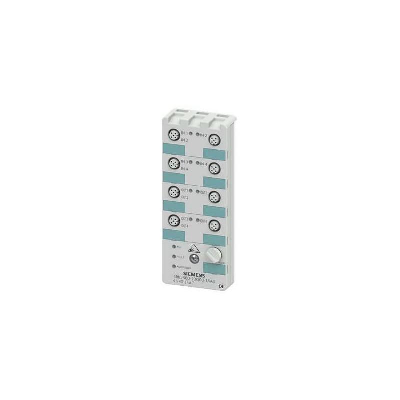 AS-I COMPACT MODULE K60, IP67, A/B-SLAVE (SPEC 3.0), DIGITAL, 4DI/4DO, 4X INPUT FOR SENSOR (MECHAN., 2-WIRE, 3-WIRE), PNP, SENSOR SUPPLY FROM DC24V MAX. TOTAL 200MA 4 X OUTPUT OUTPUT SUPPLY DC 24V 8 X M12-SOCKET Y-II-ASSIGNMENT MOUNTING PLATE 3RK19010CA00 TO BE ORDERED SEPARATELY