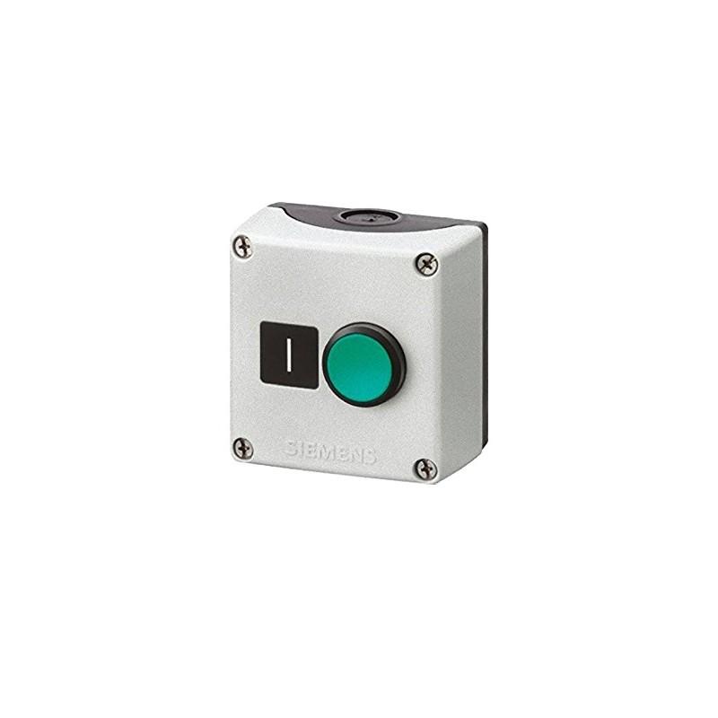 ENCLOSURE FOR COMMAND DEVICES, 22MM, ROUND, ENCLOSURE MATERIAL METAL, ENCLOSURE TOP PART GRAY, 1 COMMAND POSITION, A=PUSHBUTTON GREEN, 1NO, SCREW CONNECTION, FLOOR MOUNTING, LABEL: I, 1 X M20 EACH AT TOP AND BOTTOM !!! Phased-out product !!! SIRIUS ACT 3SU1 is suc Preferred successor ty >>3SU1851-0AB00-2AB1 <