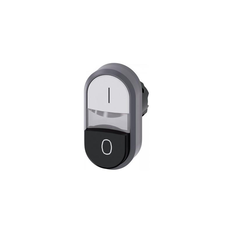 Illuminated twin pushbutton, 22 mm, round, plastic with metal front ring, white: I, Black: O, pushbuttons, flat and raised