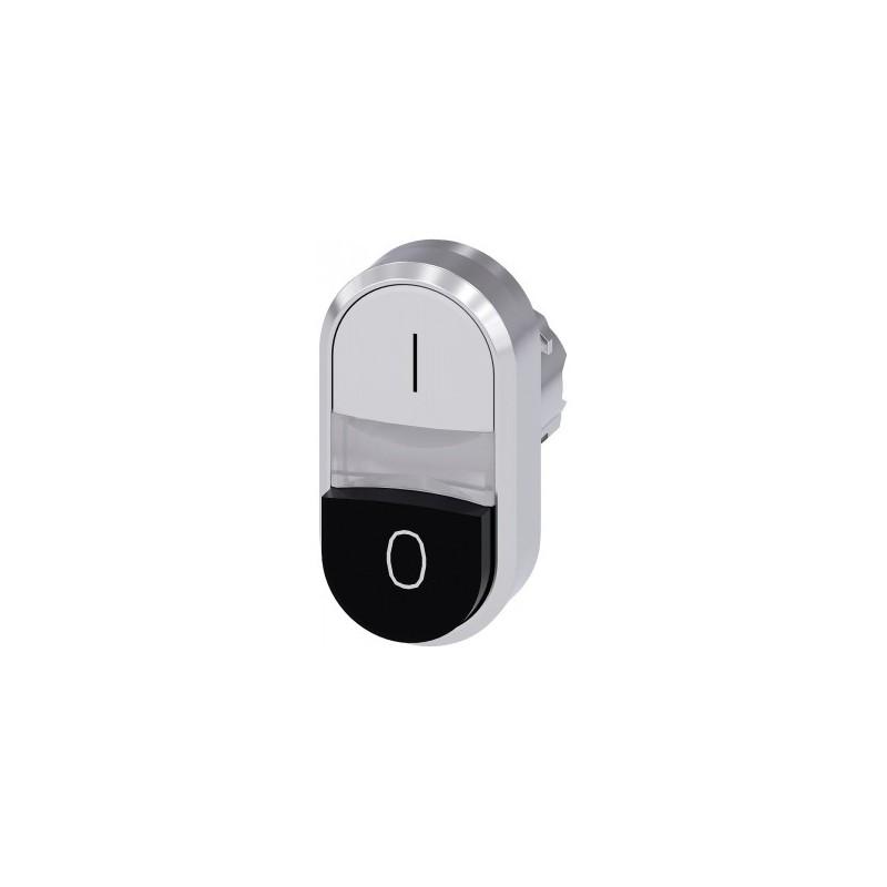 Illuminated twin pushbutton, 22 mm, round, metal, shiny, white: I, Black: O, pushbuttons, flat and raised