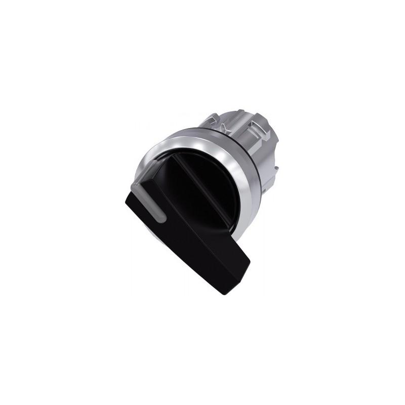 Illuminable selector switch, 22 mm, round, metal shiny, black, Selector switch long, 2 switch positions O-I, latching, actuating angle 90, 10:30h/13:30h