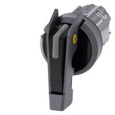 illuminable selector switch, 22 mm, round, collar metal, front ring metal high gloss, black, selector long, 3 switch positions I-O-II, latching, actuating angle 2x45°, 10:30h/12h/13:30h, can be locked in I + O, with 2 padlocks, or snap hook, shackle diameter 5 mm, can be combined with metal holder