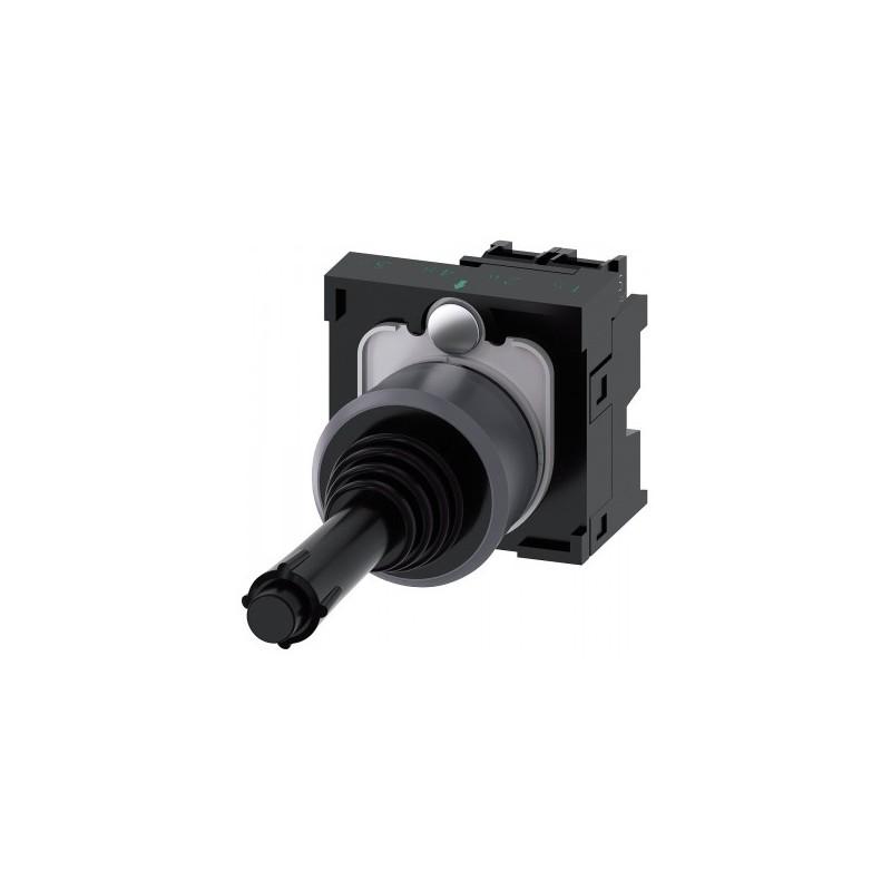 Coordinate switch, 22 mm, round, plastic with metal front ring, black, 2 switch positions, vertical latching, with mechanical interlocking, in O position, with holder, 1 NO, 1 NO, screw terminal,