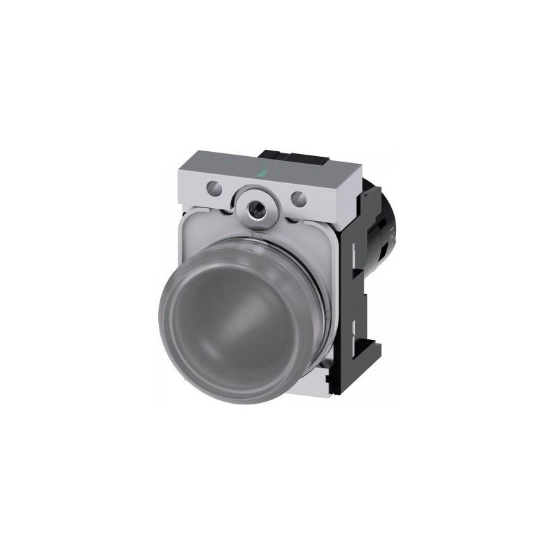 Indicator light with glow lamp, compact, 22 mm, round, metal, clear with red-green-yellow LED, lens, smooth, with holder, Operating voltage 6-24 V AC/DC, screw terminal