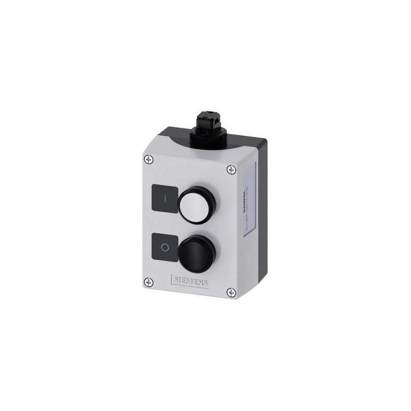 AS-Interface enclosure for command devices, 22 mm, round, Enclosure material plastic, enclosure top part gray, 2 control points plastic, Recess for labels, B=pushbutton white, label: I, 1 NO, spring-type terminal, A=pushbutton black label: O 1 NC, spring-type terminal, floor mounting, Insulation displacement system on top