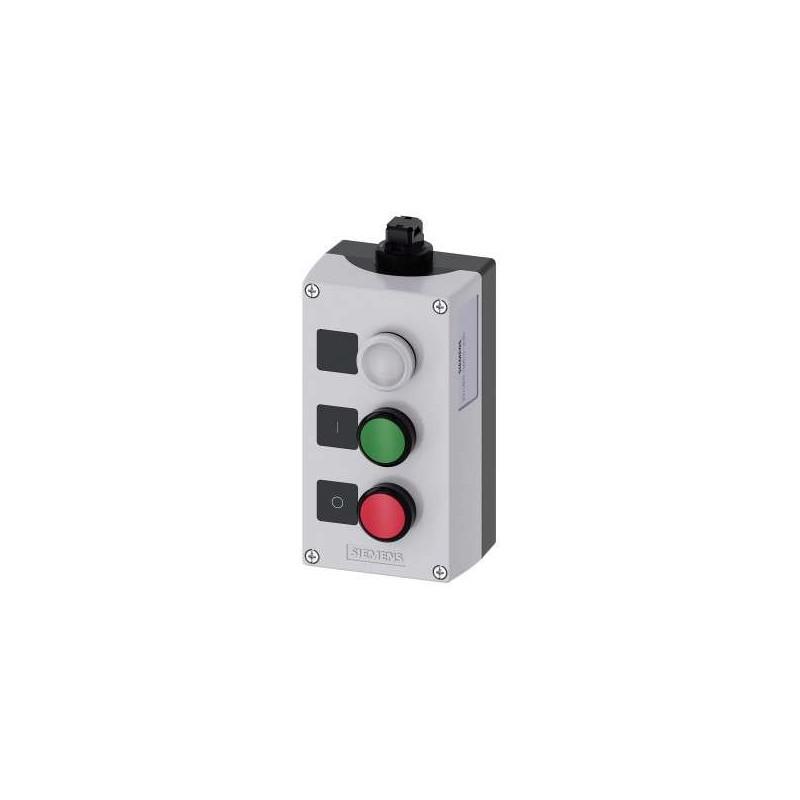 AS-Interface enclosure for command devices, 22 mm, round, Enclosure material plastic, enclosure top part gray, 3 control points plastic, Recess for labels, C=indicator light clear, label without inscription, B=pushbutton green, label: I, 1 NO, spring-type terminal, A=pushbutton red, label: O, 1 NC, spring-type terminal, floor mounting, Insulation displacement system on top