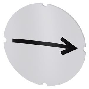 Inscription plate for illuminated pushbutton, round, milky with black font, with graphic symbol: arrow pointing to the right