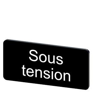 Labeling plate for snapping on or gluing to label holder, label size 12.5x27mm, black label, white font, with inscription: Sous tension