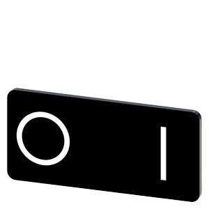 Labeling plate for snapping on or gluing to label holder, label size 12.5x27mm, black label, white font, with graphic symbol: O I