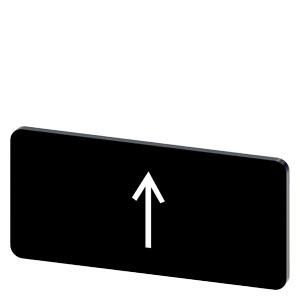 Labeling plate for snapping on or gluing to label holder, label size 12.5x27mm, black label, white font, with graphic symbol: