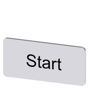 Labeling plate for snapping on or gluing to label holder, label size 12.5x27mm, silver label, black font, with inscription: start