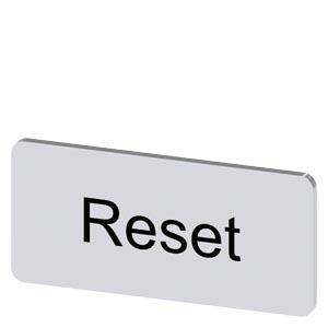 Labeling plate for snapping on or gluing to label holder, label size 12.5x27mm, silver label, black font, with inscription: Reset