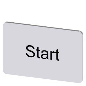 Labeling plate for snapping on or gluing on label holder, Label size 17.5 x 27 mm, silver label, black font, with inscription: start