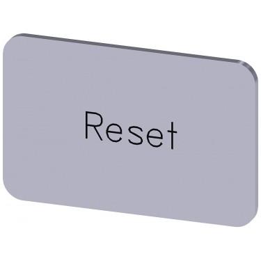 Labeling plate for snapping on or gluing on label holder, Label size 17.5 x 27 mm, silver label, black font, with inscription: Reset