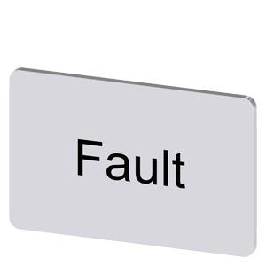 Labeling plate for snapping on or gluing on label holder, Label size 17.5 x 27 mm, silver label, black font, with inscription: Fault