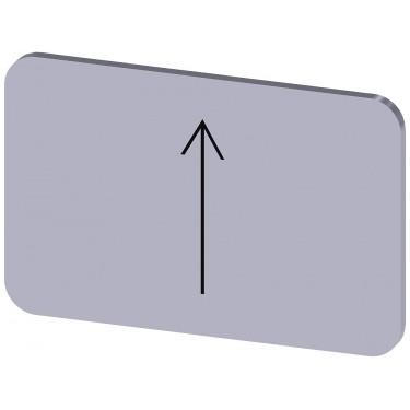 Labeling plate for snapping on or gluing on label holder, Label size 17.5 x 27 mm, silver label, black font, with graphic symbol: arrow pointing up