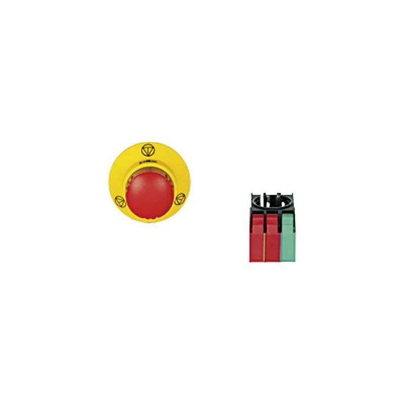 PITestop E-STOP/contact block set consisting of E-STOP pushbutton with E-STOP symbol and with logo and contact block with monitoring. 2 N/C, 1 signal contact (1 N/O, 2 N/C). With spring-loaded terminals.