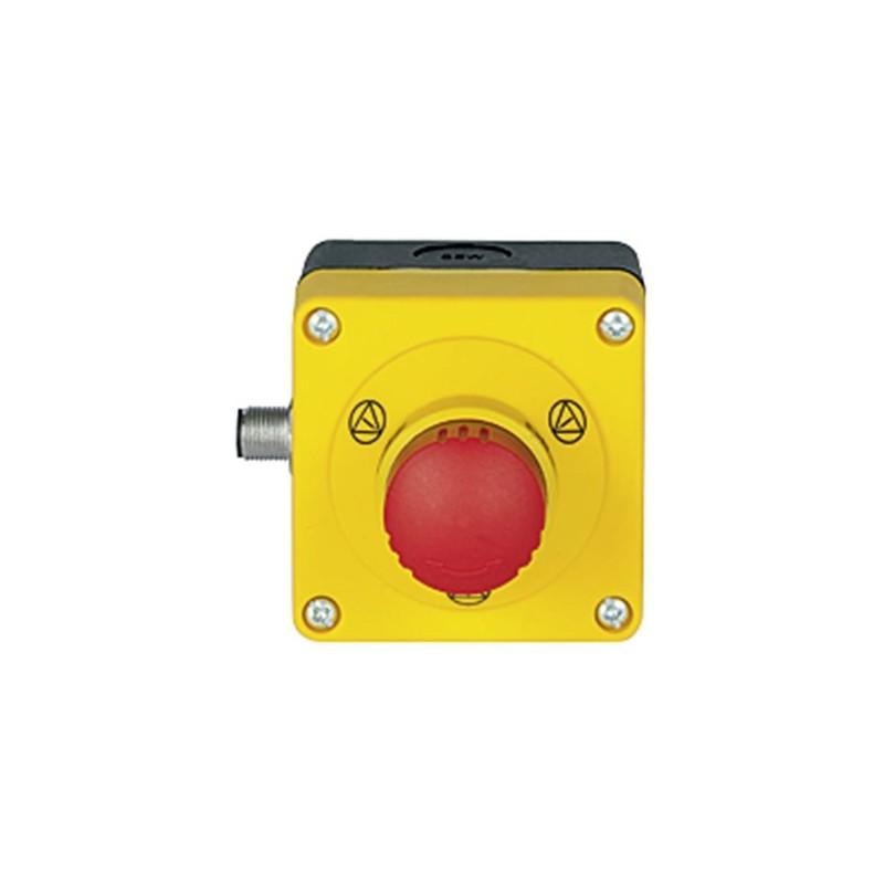 PITestop E-STOP/contact block incl. surface mount housing, set consisting of E-STOP pushbutton with E-STOP symbol and with logo, and contact block, 2 N/C, with M12 connection 5-pin.