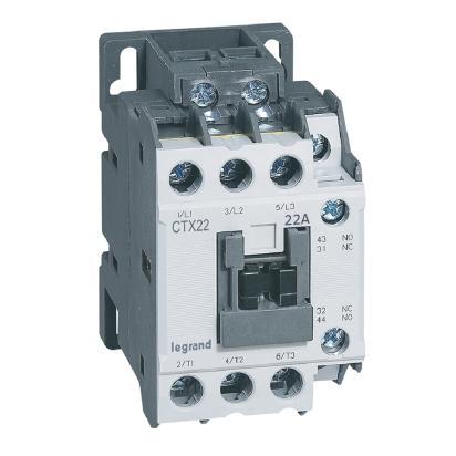CTX3 22 3P contactor maximum current in AC3 22A in AC3 40A AC1 contact 1NO1NC control voltage 24Vac three-phase motor power at 400415Vac 11kW. Built-in auxiliary contacts, screw power terminals