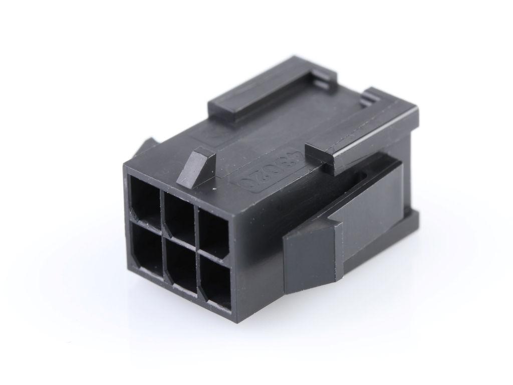 Micro-Fit 3.0 Plug Housing, Dual Row, 6 Circuits, UL 94V-0, Panel Mount Ears, Low-Halogen, Black