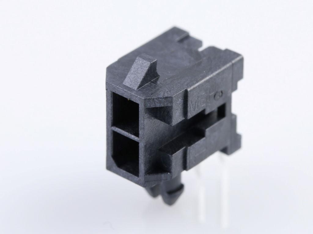 Micro-Fit 3.0 Right-Angle Header, 3.00mm Pitch, Dual Row, 2 Circuits, with Snap-in Plastic Peg PCB Lock, Gold, Glow-Wire Capable, Black
