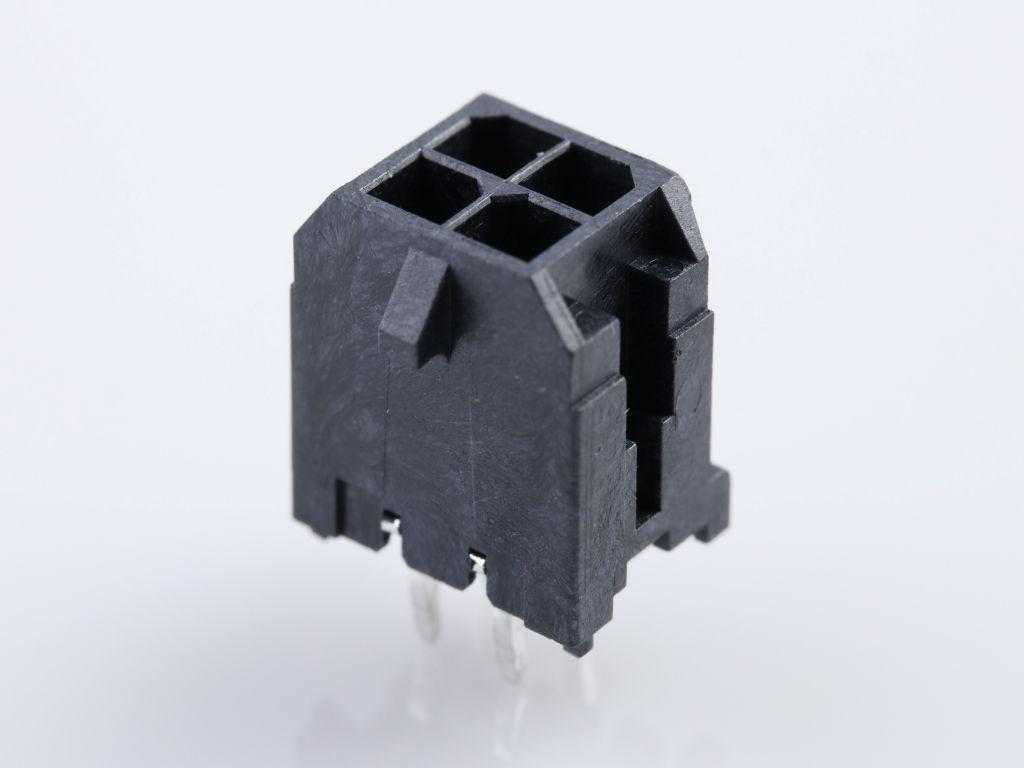 Micro-Fit 3.0 Vertical Header, 3.00mm Pitch, Dual Row, 4 Circuits, with PCB Polarizing Peg, Tin, Glow-Wire Capable, Black