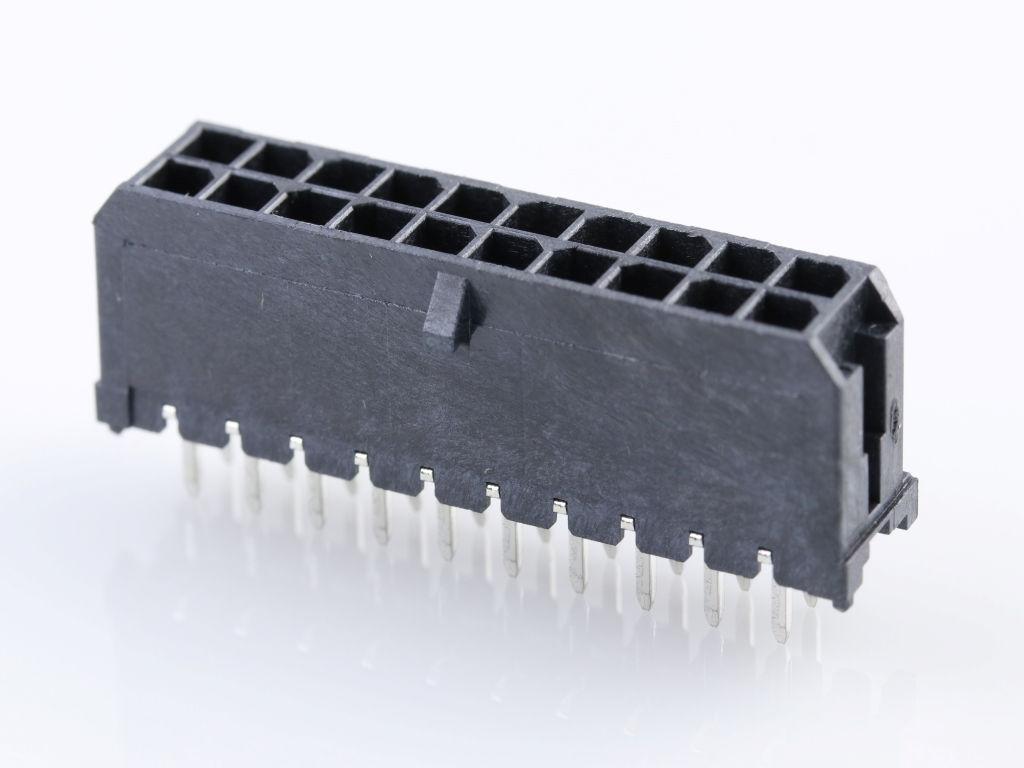 Micro-Fit 3.0 Vertical Header, 3.00mm Pitch, Dual Row, 20 Circuits, with PCB Polarizing Peg, Tin, Glow-Wire Capable, Black
