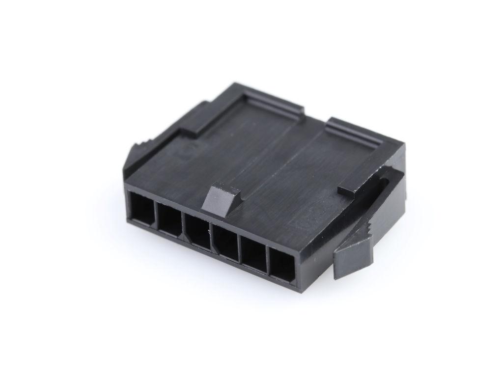 Micro-Fit 3.0 Plug Housing, Single Row, 6 Circuits, UL 94V-0, Panel Mount Ears, Low-Halogen, Black