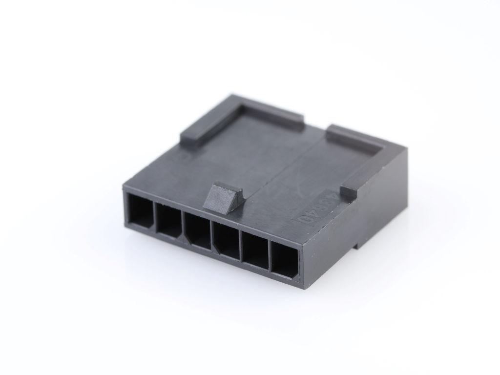 Micro-Fit 3.0 Plug Housing, Single Row, 6 Circuits, UL 94V-0, Low-Halogen, Black