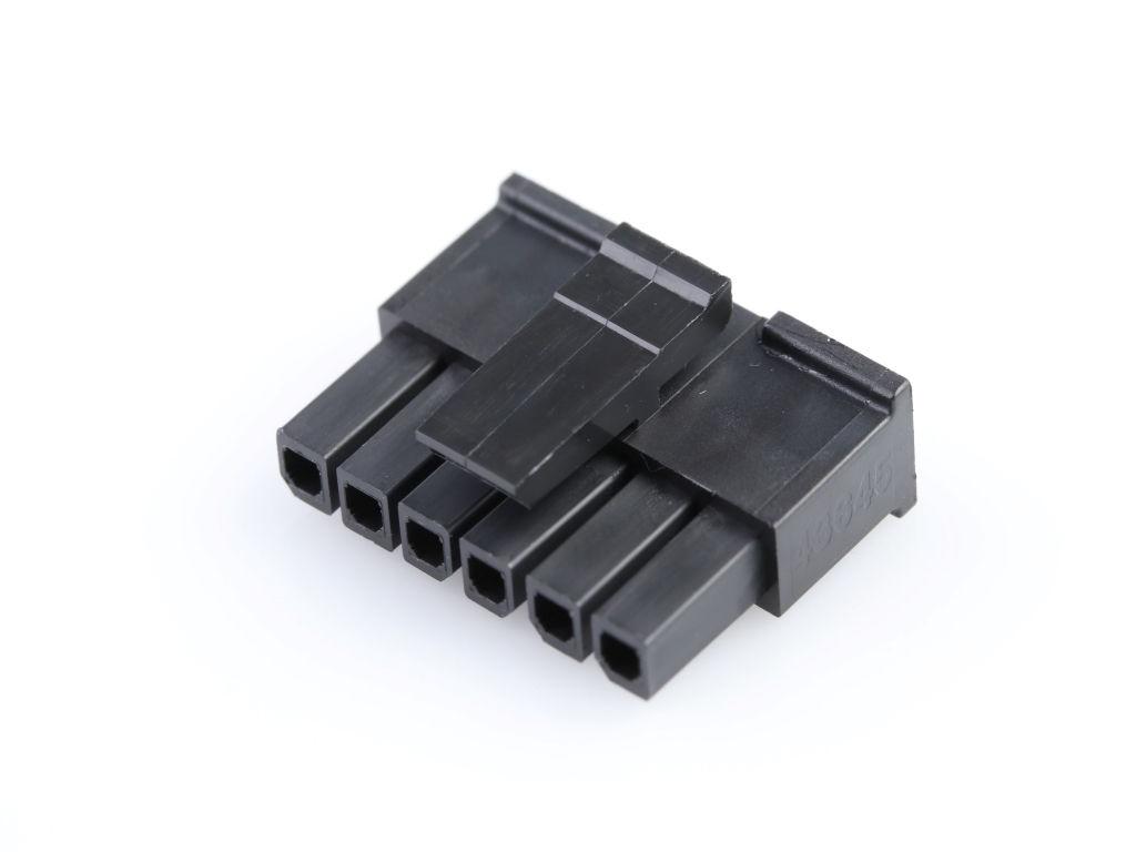 Micro-Fit 3.0 Receptacle Housing, Single Row, 6 Circuits, UL 94V-0, Black