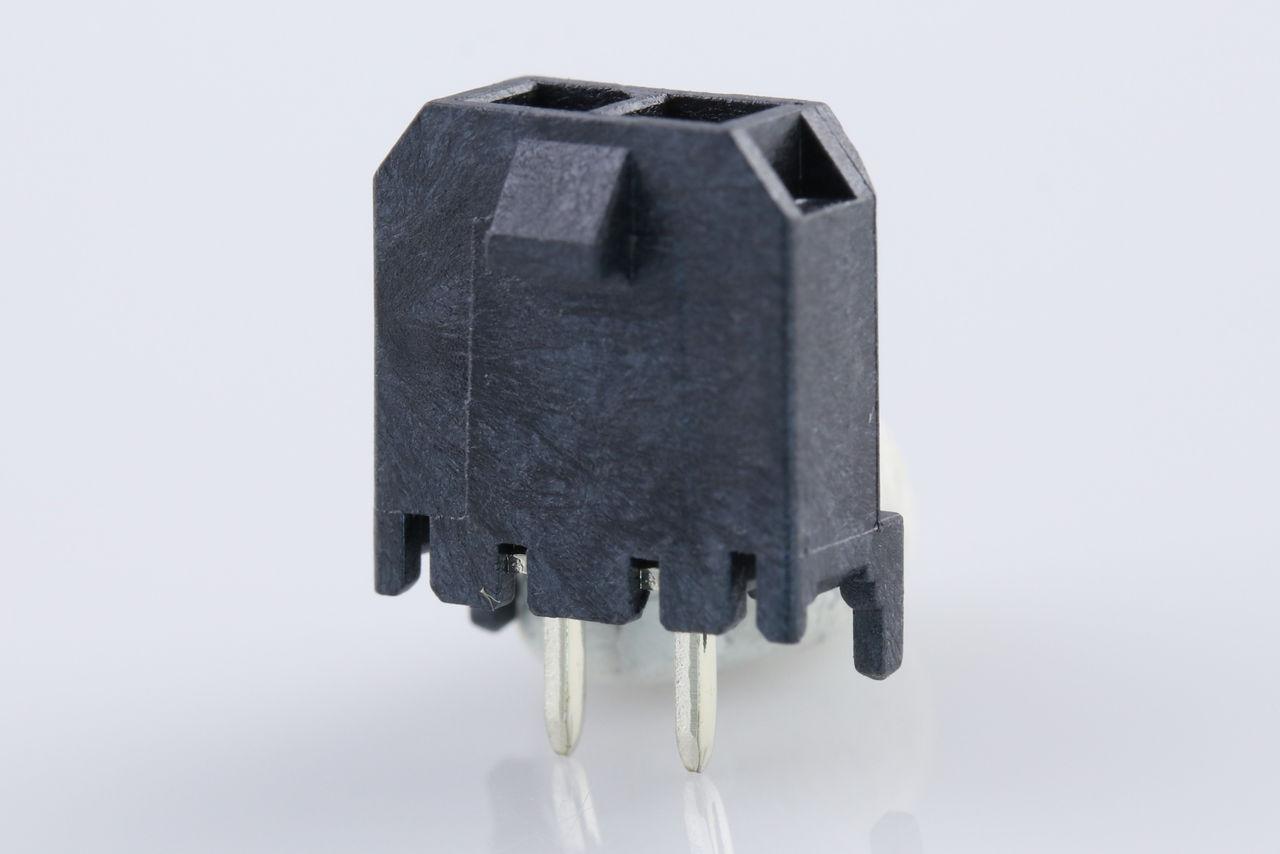 Micro-Fit 3.0 Vertical Header, 3.00mm Pitch, Single Row, 2 Circuits, with PCB Polarizing Peg, Gold, Glow-Wire Capable, Black