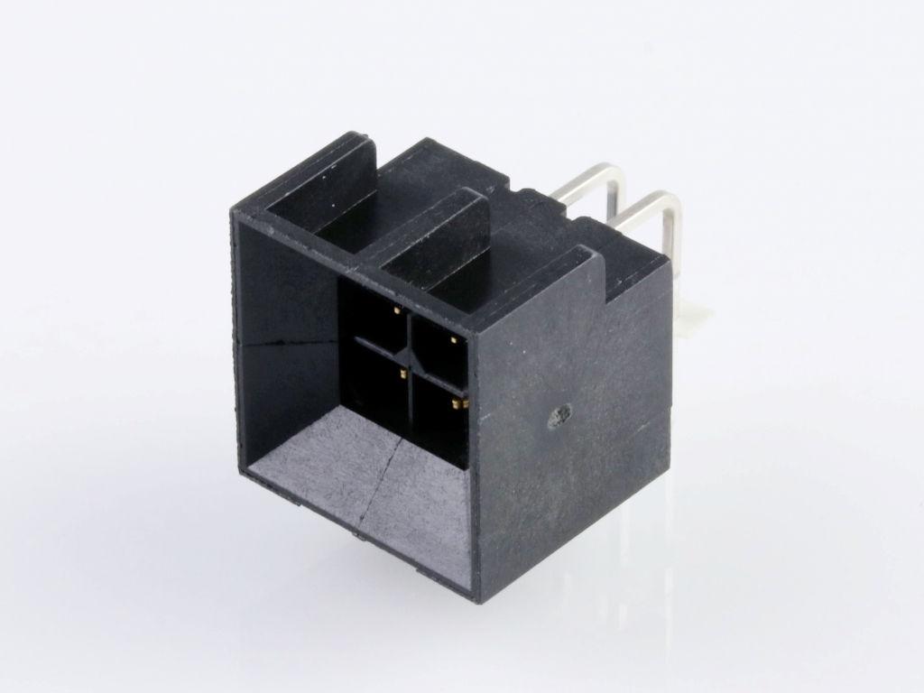 Micro-Fit BMI Header, Surface Mount Compatible, Dual Row, Right-Angle, with Snap-in Plastic Peg PCB Lock, 4 Circuits, Tin (Sn) Plating