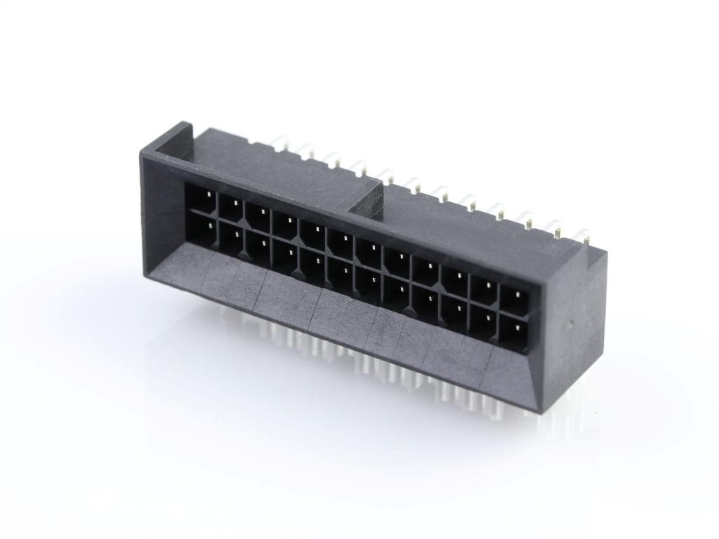 Micro-Fit BMI Header, Surface Mount Compatible, Dual Row, Right-Angle, with Snap-in Plastic Peg PCB Lock, 24 Circuits, Tin (Sn) Plating