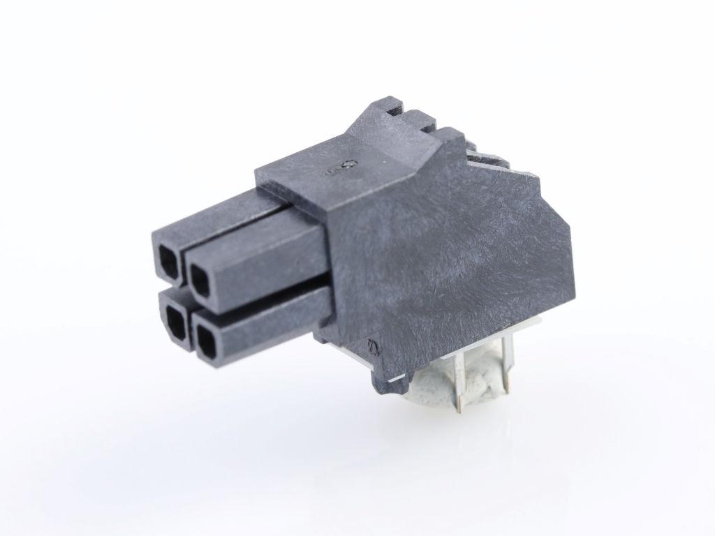 Micro-Fit BMI Receptacle Header, Dual Row, Right-Angle, with Press-fit Plastic Pegs, 2.54µm Tin (Sn), 4 Circuits