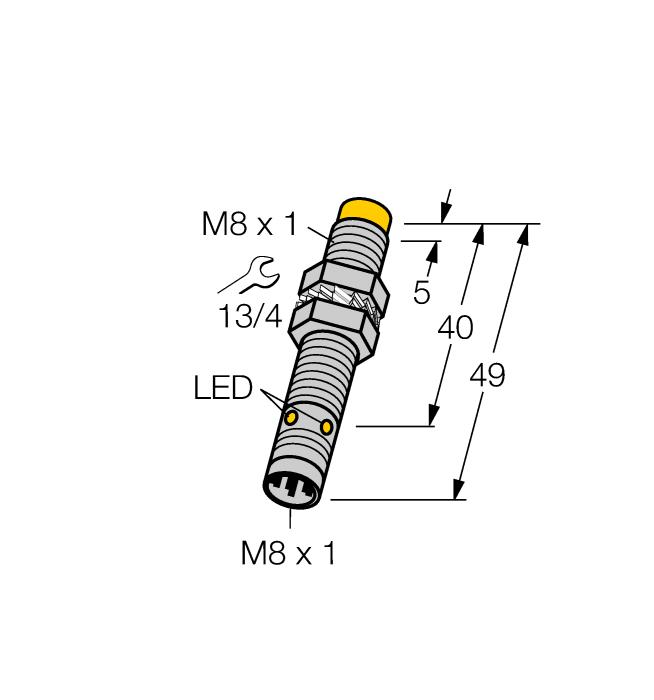 Turck Cylindrical Proximity Sensor, PNP, M8 x 1, 4mm Sensing, 10 - 30VDC