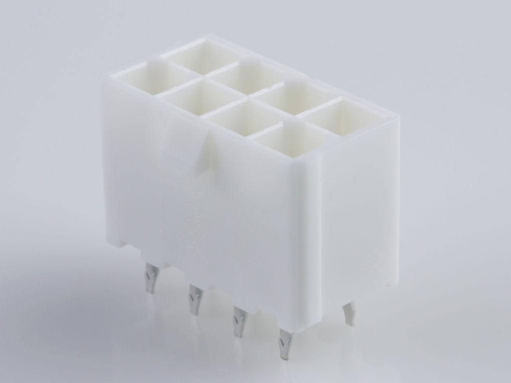 Mini-Fit Plus Header, Dual Row, Vertical, 8 Circuits, without Snap-in Plastic Peg PCB Lock, without Drain Holes, PA Polyamide Nylon 6/6, UL 94V-0, Tin (Sn) 1.27µm Over Nickel (Ni) Plating