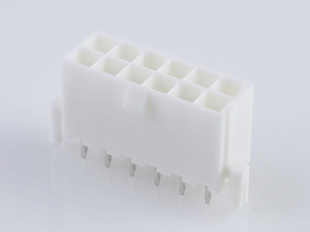 Mini-Fit Plus Header, Dual Row, Vertical, 12 Circuits, with Snap-in Plastic Peg PCB Lock, without Drain Holes, PA Polyamide Nylon 6/6, UL 94V-0, Tin (Sn) 1.27µm Over Nickel (Ni) Plating