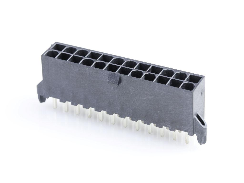 4.20mm Pitch, Mini-Fit Jr. Reflow Solder Capable Header, Dual Row, Vertical, 24 Circuits, 2.36mm PCB Thickness, with PCB Pegs, LCP Housing, with Tin (Sn) Over Nickel (Ni) Plating, Glow-Wire Capable, Tray