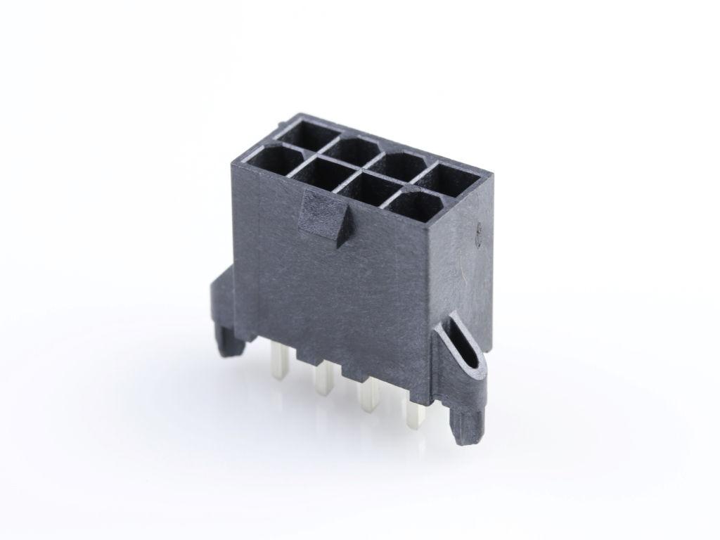 4.20mm Pitch, Mini-Fit Jr. Reflow Solder Capable Header, Dual Row, Vertical, 8 Circuits, 3.18mm PCB Thickness, with PCB Pegs, LCP Housing, with Tin (Sn) Over Nickel (Ni) Plating, Glow-Wire Capable, Tray