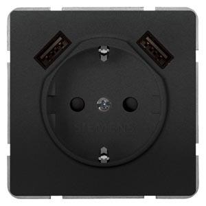 DELTA style, Antracite cosso SCHUKO socket outlet 10/16 A with 2 USB Chargers