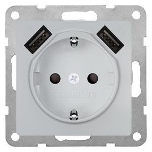 I-system,Schuko+ 2USB Chargers Aluminum Metallic