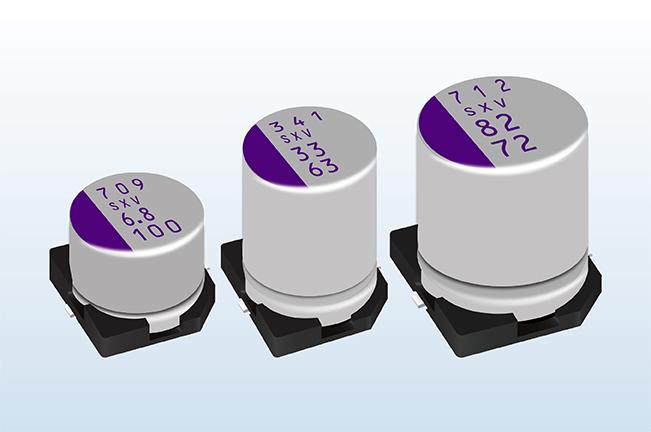 Panasonic SXV polymeric capacitor, 33 F, 63V dc, SMD