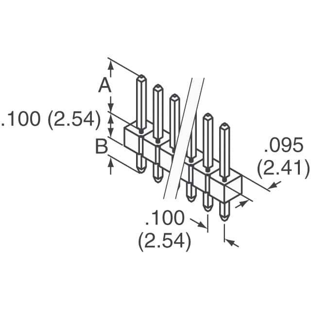 Board to Board connector, Unshrouded vertical header, Through Hole, Single Row, , 10 Positions, 2.54 mm (0.100in) Pitch.