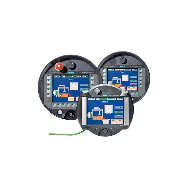 SIMATIC Mobile Panel 277 with integrated acknowledgment button, stop button, handwheel, D key-operated switch and two illuminated pushbuttons, configurable with WinCC flexible Standard Version 2005 SP1 or higher or TIA Portal V11 to V14