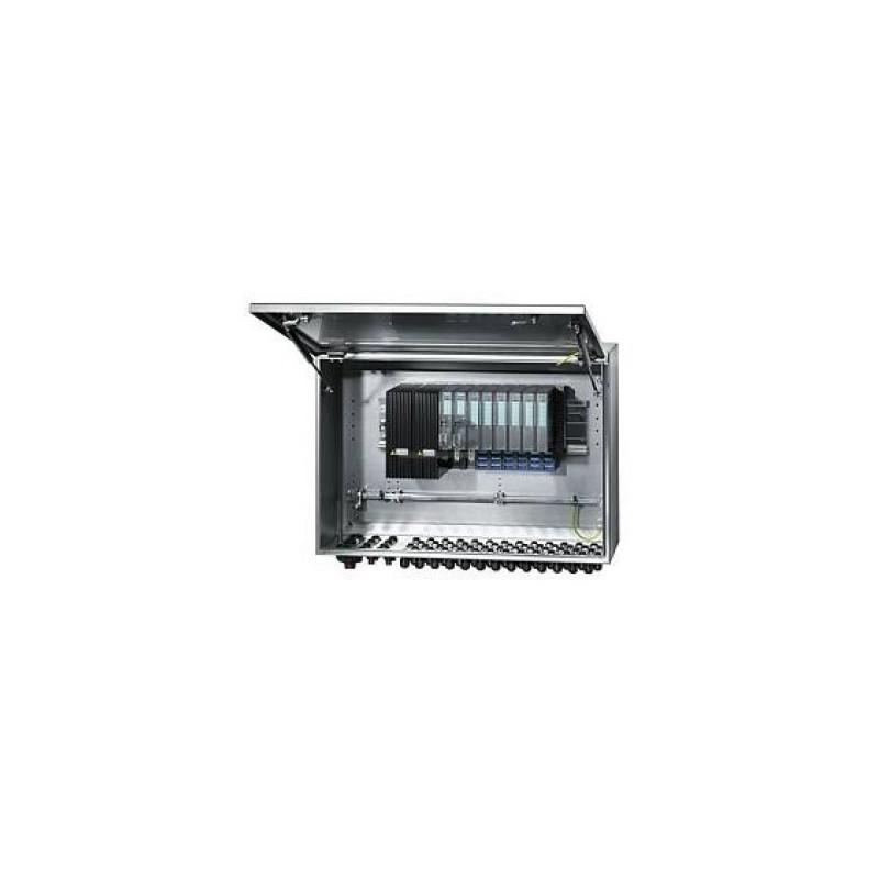 Ex-device made of stainless steel, IP65. With installation of the ET 200iSP and AirLineEx pneumatic components (these must be ordered separately). Device group II Cat. 3 Zone 2 Size (WxHxD): 650x450x230, for max. 15 I/O modules. Cable glands: 2x M32 power supply, 4x M20 bus cables and 65x M16 (4-9 mm) for signals in 5 rows, plastic version. Ambient operating temperature min. 0 / -20 C