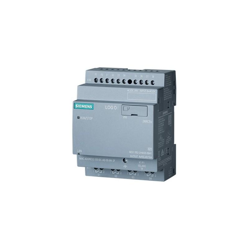 LOGO! 24RCEO (AC), logic module, PS/I/O: DC 24V/24V AC/relay, 8 DI/4 DQ, without display, memory 400 blocks, modular expandable, Ethernet, integrated web server, data log, user-defined web pages, standard microSD card for LOGO! Soft Comfort V8.3 or higher, older projects executable cloud connection in all LOGO! 8.3 basic units
