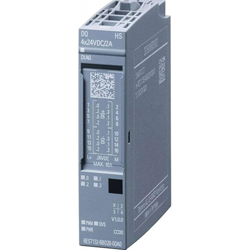 SIMATIC ET 200SP, DIGITAL OUTPUT MODULE, DQ 4X24VDC/2A HIGH SPEED, PACKING UNIT: 1 PIECE, FITS TO BU-TYPE A0, COLOR CODE CC00; THREE ALTERNATIVE MODES: DQ,OVERSAMPLING, PWM MODULE DIAGNOSIS