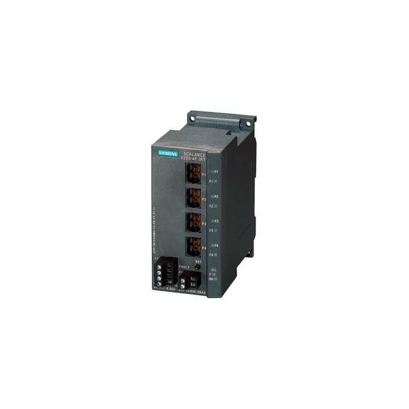 Scalance X200-4PIRT Managed IE IRT Switch, 4 X 100MBIT/S POF SC RJ PORTS, FAULT SIGNAL CONTACT with SET Button, REDUNDANT POWER SUPPLY, PROFINET-IO DEVICE, NETWORK MANAGEMENT, RED.- MANAGER Integrated, INCL. ELECTRON. MANUAL ON CD, C-PLUG OPTIONAL